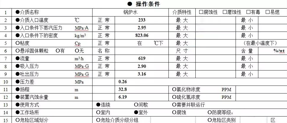(4) 介質(zhì)特性:介質(zhì)為鍋爐水,兩種泵型均可滿足。
