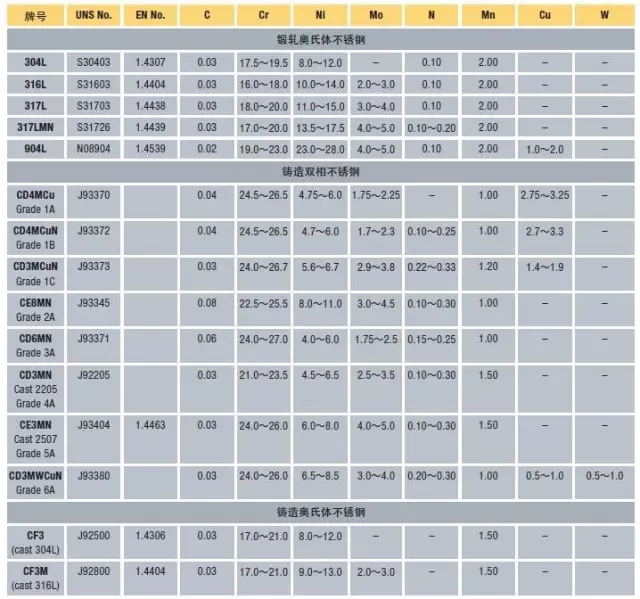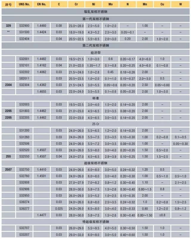 1.雙相不銹鋼的化學成分