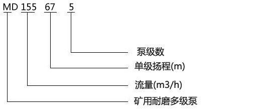 MD155-67X5型礦用耐磨多級離心泵型號意義: