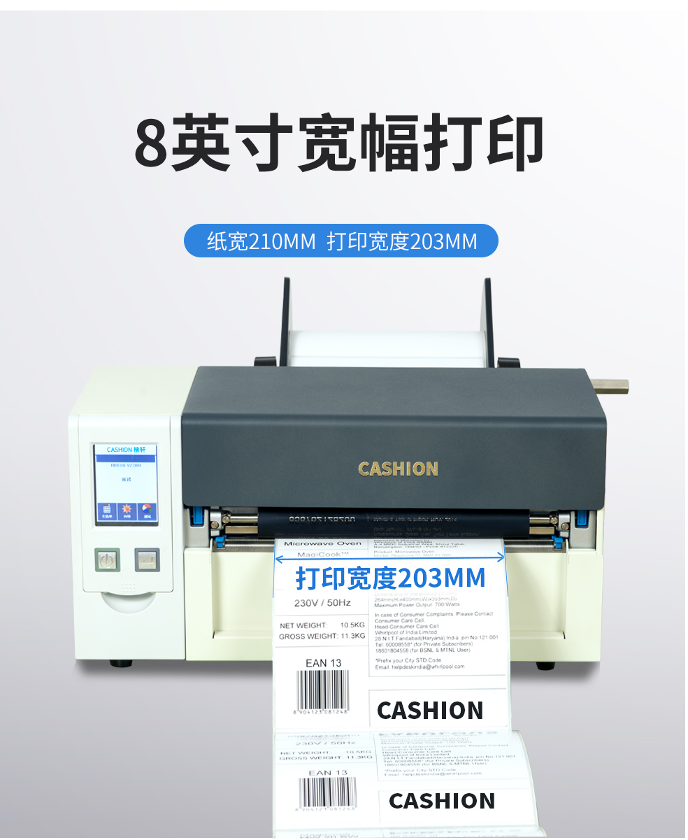 - 自動感測節(jié)省使用耗材的CASHION C-204條碼打印機(jī)