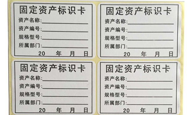 固定資產(chǎn)標(biāo)簽是用于區(qū)別固定資產(chǎn)的一種特定標(biāo)識(shí);資產(chǎn)標(biāo)簽上一般有資產(chǎn)名稱(chēng)、資產(chǎn)編號(hào)、規(guī)格型號(hào)、所屬部分、相關(guān)日期等信息。固定資產(chǎn)標(biāo)簽又稱(chēng)固定資產(chǎn)標(biāo)簽紙,固定資產(chǎn)管理標(biāo)簽,固定資產(chǎn)標(biāo)簽貼等。